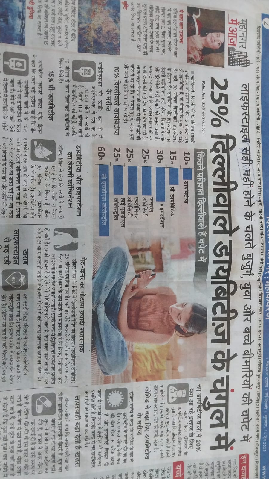 आईसीएमआर की स्टडी में सामने आया अलार्मिंग डेटा बताता है कि भारत में 10 करोड़ से ज्यादा लोगों को डायबिटीज हो चुका है और 13.6 करोड़ लोग प्री-डायबिटिक हैं। देश में 11.4% लोग डायबिटिक हैं और 15.3% प्री-डायबिटिक है। जिसका मतलब है एक चौथाई से अधिक लोग डायबिटीज की चपेट में आ चुके हैं और 35.4% लोगों को हाइपरटेंशन की समस्या हैं। भारत को एक युवा देश कहा जाता है, लेकिन युवाओं का यह देश अब बीमारो का देश बनता जा रहा हैं। जी हां इंडियन काउंसलिंग ऑफ मेडिकल रिसर्च(ICMR) ने हाल ही में एक चौंकाने वाला खुलासा किया हैं, जिसमें बताया गया है कि भारत में डायबिटीज, ब्लड प्रेशर, बेली फैट और हाई कोलेस्ट्रॉल जैसी बीमारियों का खतरा बढ़ता जा रहा है। खतरनाक है डायबिटीज, इसे जड़मूल से खत्म करिए, नहीं तो इसके साथ दूसरी बीमारियां मिलकर आपको खत्म कर देगी यह सावधान होने का वक्त है। डायबिटीज को कंट्रोल नहीं रिवर्स करिए।